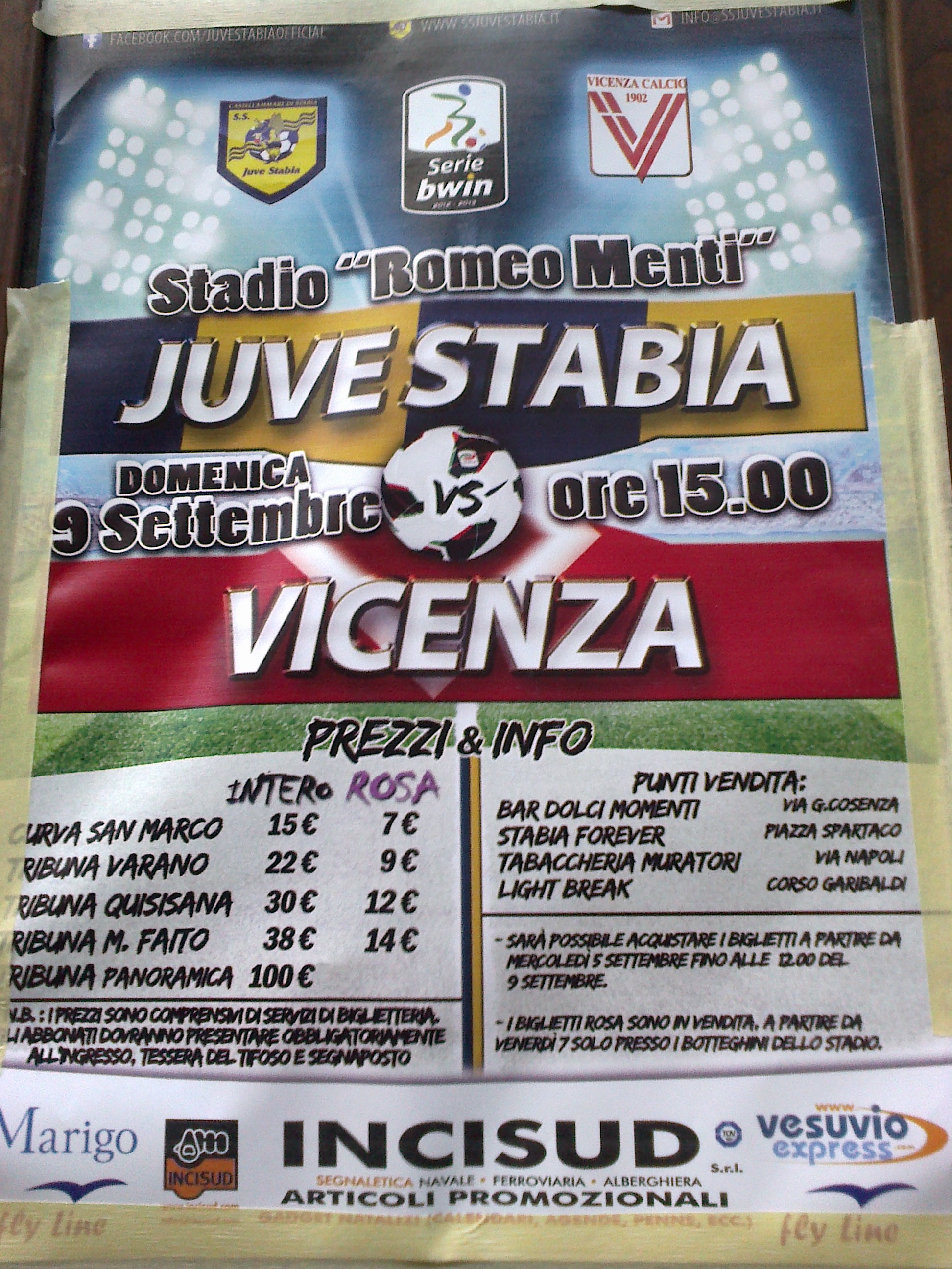 You are here : Notizie Calcio serie A, B,C e D – TuttoCalciatori.Net » » Ecco i prezzi dei tagliandi d’ingresso per Juve Stabia – Vicenza (fonte:Mario Miccio)